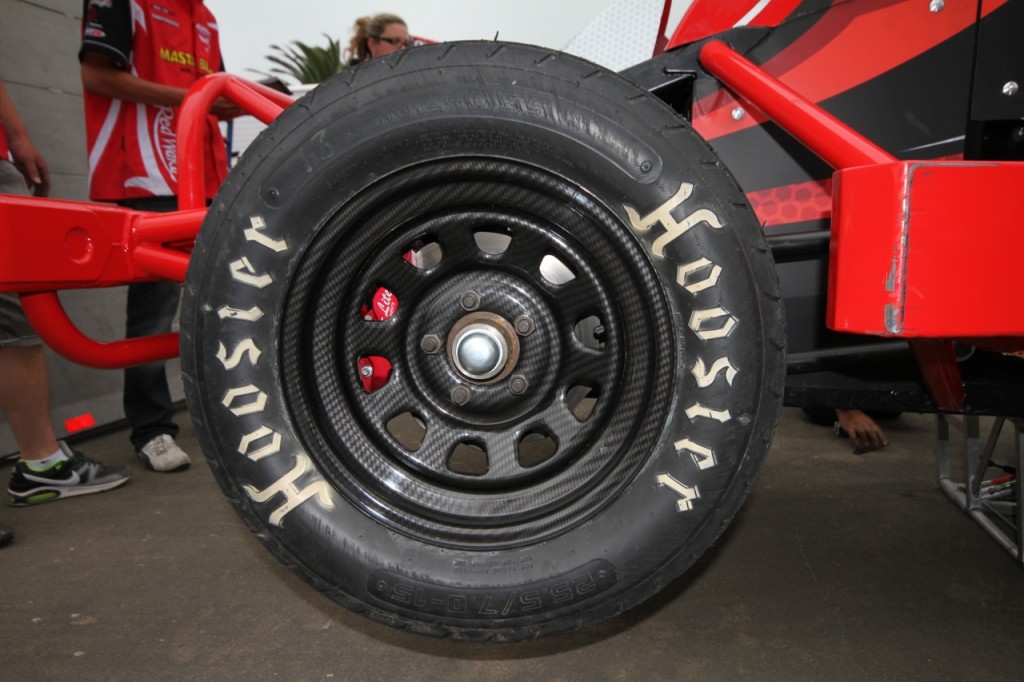 Sitting up on its custom pneumatic jack setup, the car looks quite different to anything else currently racing, with sculpted body lines and and a very flowing look that indicates the level of thought that has gone into this car. If looks = speed, then not many other cars will touch the waka.